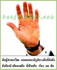 จะเห็นว่าเป็นมือที่มีฝ่ามือหนาแน่นไปด้วยเนื้อ มีฝ่ามือเป็นรูปสี่เหลี่ยมผืนผ้า และมีนิ้วมือที่สั้น ลักษณะมือที่หนาแบบนี้ บ่งถึงการมีพลังชีวิตที่เต็มเปี่ยม เนินต่างๆเต็มสมบูรณ์ ยกเว้นที่เนินเสาร์จะแบนไปหน่อย เมื่อเทียบกับเนินอื่นๆ และที่สำคัญที่สุดของมือนี้คือ ไม่มีเส้นขวางมาตัดเลย ไม่ว่าจะเป็นเส้นตัดเล็กๆ ก็ไม่มีให้เห็น ตรงนี้ละครับเรียกว่า ผู้มีบารมี ผู้ที่จะก้าวขึ้นมาเป็นใหญ่เป็นโต หรือใครก็ตามที่จะประสบความสำเร็จได้โดยไม่มีอุปสรรคใดๆแล้ว ต้องไม่มี เส้นขวาง มากั้นมาขวางเส้นทางเดินของ เส้นตั้ง ต่างๆ บุคคลนั้นจึงจะสำเร็จสมหวัง ในภาระหน้าที่ของเขา ไม่ว่าคนนั้นจะตั้งเป้าหมายไปที่ไหน ก็จะไปถึงครับ