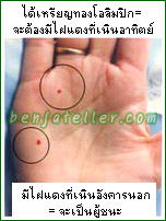 ฉะนั้นการที่ อุดมพร พลศักดิ์ ที่ได้เหรียญทองโอลิมปิกมา ในมือเขาจะต้องมี ไฝแดงขึ้นมาปรากฏ ทั้งเนินอังคารนอกและเนินอาทิตย์ อย่างแน่นอน และใครก็ตามที่จะได้เหรียญเป็นคนต่อไป ก็จะต้องมีเครื่องหมายดังกล่าวเกิดขึ้น ที่เนินทั้ง ๒ นี้ ไม่ว่านักกีฬาคนนั้นจะเป็นชนชาติใดก็ตาม จะเป็นแขกอิรัก หรือแขกอินเดีย ก็อยู่ในกฎข้อนี้เช่นกัน เพราะวิชาหัตถศาสตร์ นั้นเป็นหลักสากลของโลก ที่สามารถนำมาใช้ได้กับทุกชาติทุกศาสนา ไม่มีการยกเว้นครับ อิทธิพลของไฝดำ คือแพ้ตลอดชาติ ถ้าไปเกิดขึ้นที่เนินอังคารนอก ไม่ว่าจะเป็นมือของใครก็ตาม ถือว่าเป็นคนโชคร้าย ในด้านการแข่งขัน ชิงชัยทุกเรื่อง