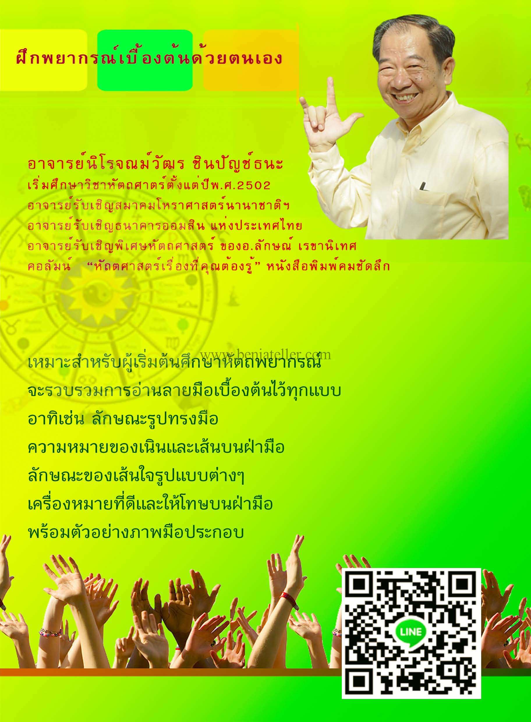 ท่านจะได้ศึกษาตั้งแต่พื้นฐานความรู้ลายมือจนสามารถพยากรณ์เป็นอาชีพได้ ในเล่มนี้ได้รวบรวมรายละเอียดไว้ทั้งหมดแล้ว อาทิเช่น