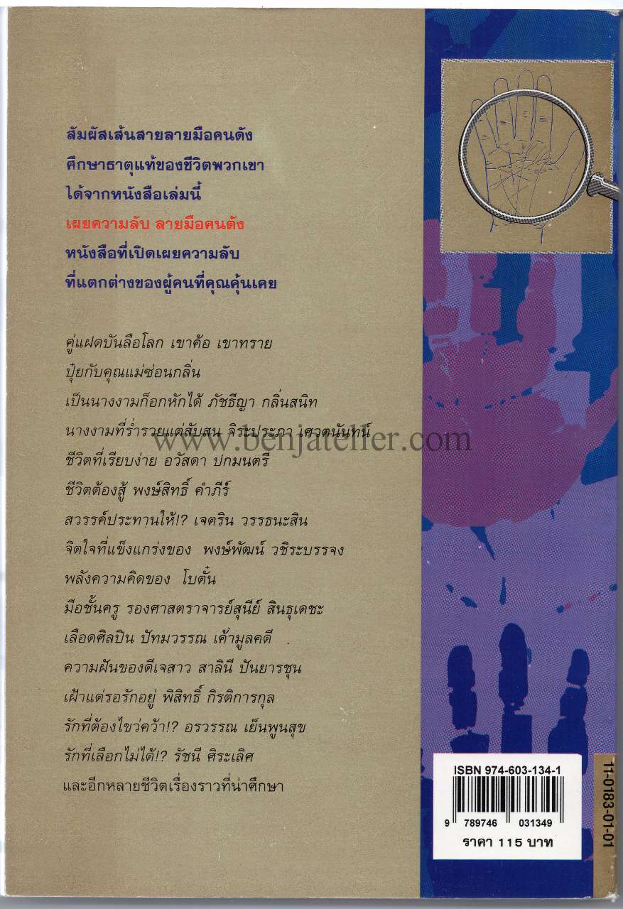 หนังสือที่อธิบายถึงความลับบนฝ่ามือที่คุณสามารถวิเคราะห์ ความเหมือนที่แตกต่างของชีวิตได้จากเส้นสายที่ปรากฏบนฝ่ามือ โดยมีกรณีตัวอย่างของลายมือ คนดังให้คุณได้ศึกษาจากชีวิตจริงของพวกเขา